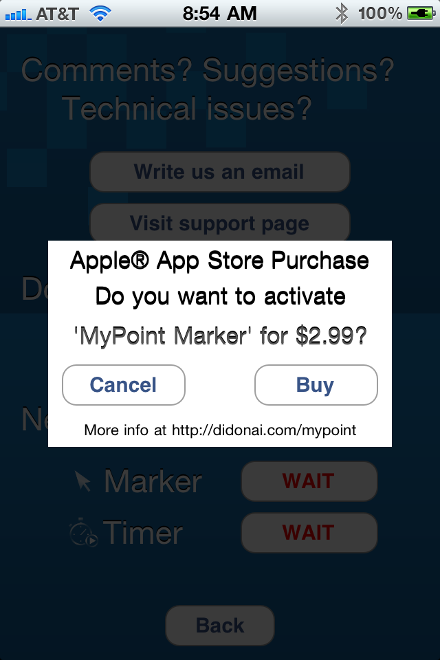 Confirm the In-App purchase (the processing from this point on is handled by Apple; language, price and currency may vary): If you have already purchased the feature you will not be charged twice. |