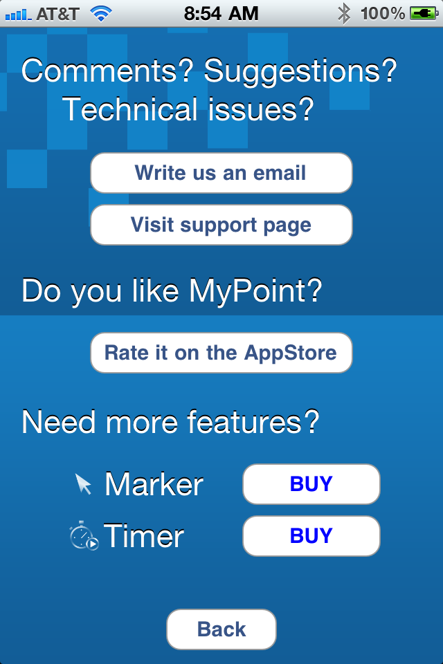 Launch MyPoint and tap on the info icon on the lower right corner on the initial screen | ![]() |